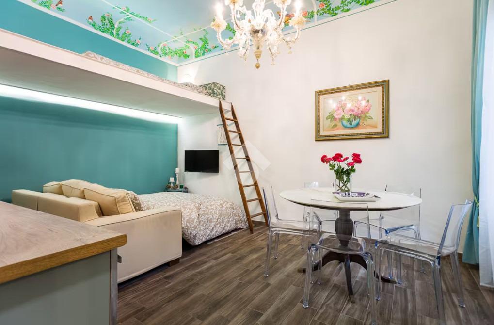 Completamente ristrutturato di recente, l'appartamento colpisce fin dal primo sguardo grazie alla presenza di pareti decorate che donano agli ambienti un tocco artistico e ricercato. La zona giorno è composta da un soggiorno con cucina a vista, impreziosito da una zona soppalcata che può essere utilizzata sia come ripostiglio sia come comoda zona notte aggiuntiva. La camera da letto matrimoniale è ampia e ben proporzionata, mentre il bagno, pur essendo cieco, è moderno e funzionale, dotato di box doccia.